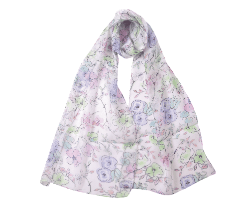 パープルと淡いピンクのやさしい配色の花柄ストール